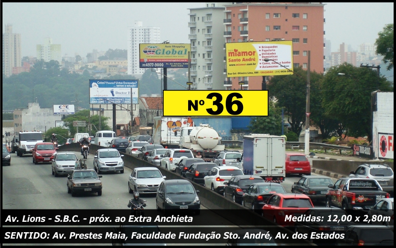 A Avenida Kennedy em Diadema possui fluxo de 34.580 veículos/dia e em Mauá existem pontos na Avenida João Ramalho – fluxo 39.840 veículos/dia; Avenida Capitão João – fluxo 32,650 veículos/dia; e Rodoanel – fluxo 36.580 veículos/dia.